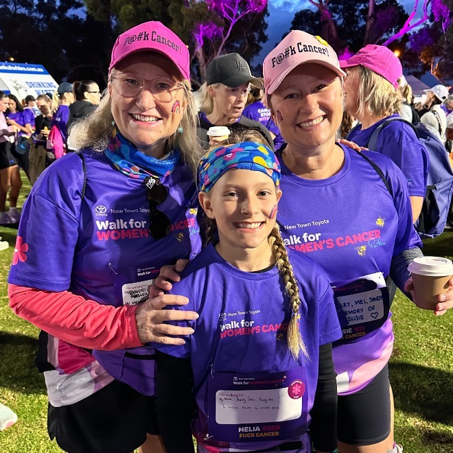 On Saturday 2 May 2026, we're challenging ourselves to walk 35km as part of the New Town Toyota Walk for Women's Cancer. We're doing it to raise vital funds for women’s cancer research at the Harry Perkins Institute of Medical Research because the women we cherish deserve to live longer, healthier lives free from cancer.